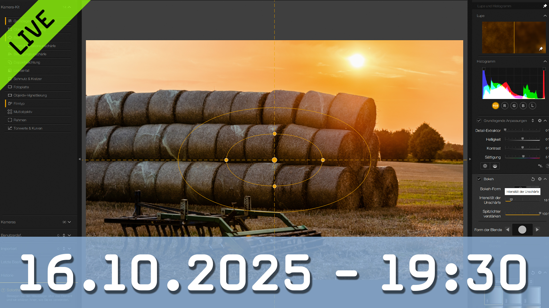 Was früher durch Filmwahl, Entwickler, Kameradefekte oder Laborfehler entstand, kannst du heute gezielt einsetzen – mit Analog Efex aus der Nik Collection. In diesem Webinar am 15. Oktober um 19:30 Uhr führt dich Marwin durch die vielfältigen Möglichkeiten, digitale Bilder in analog anmutende Kunstwerke zu verwandeln.