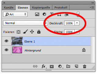 Deckkraftregler bei 100%