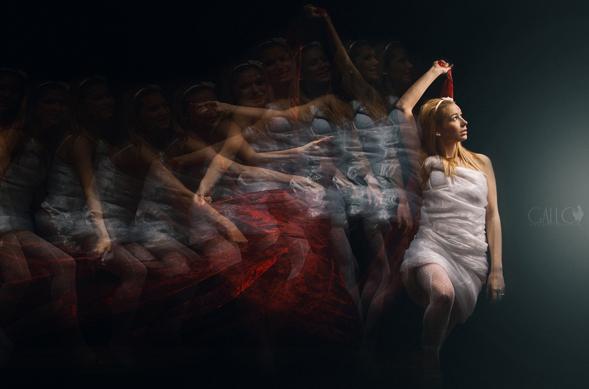 Und hier noch ein Foto von einer kleinen Ballett-Session, das im Grunde genauso funktioniert. Die zwei Unterschiede: Hier hängen drei Speedlights von der Decke (bare) und das vierte scheint für ein etwas gefälligeres Licht durch einen weißen Durchlichtschirm.